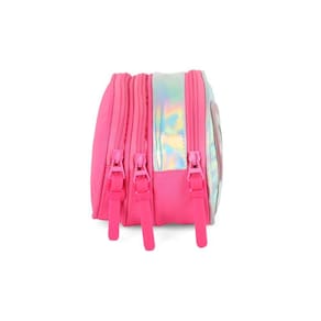 Kit mochila de rodinhas com bolsos laterias em tela com elástico, sem alças de costas e reguláveis, silk frontal, bolso frontal com zíper, alça de mão. Lancheira estampada com alça de costas e alça de mão, além de etiquetas personalizadas. Estojo da mesma estampa.