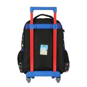 Kit mochila de rodinhas com bolsos laterias em tela com elástico, sem alça de costas, silk frontal, bolso frontal com zíper, alça de mão. Lancheira estampada com alça de costas e alça de mão, além de etiquetas personalizadas. Estojo da mesma estampa.