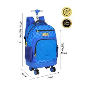 Mochila Sonic 4 Rodas 360º - Acompanhe o Sonic em suas aventuras Leve a emoção do Sonic para a escola com essa incrível mochila de rodinhas Perfeita para os pequenos fãs do ouriço azul mais rápido do mundo, ela possui design moderno e divertido, com as cores e o logo do Sonic. Características: Rodinhas 360º Alça de costas ajustável Bolso lateral Material resistente Amplo espaço interno Design moderno e divertido Triplo compartimento