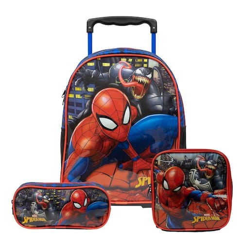 Conteúdo da embalagem: - 1 Mochila de Rodas Spider Man X2 - 1 Lancheira Spider Man X2 - 1 Estojo Spider Man X2
