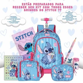 Kit Mochila Stitch Rodas Lancheira E Estojo Box Escolar Kids - Luxcel O Kit Mochila de Rodas Stitch + Lancheira + Estojo Box é completo e funcional, o kit traz mochila de rodas espaçosa e prática, lancheira térmica para conservar os alimentos e estojo triplo para organizar os materiais. Com o charme divertido do Stitch, é perfeito para acompanhar as crianças na escola e nos passeios. Características Mochila: - Pega de Transporte Manual - Bolso Lateral Telado Mesh com brilho - Bolso Frontal Utilitário com estampa - Zíper com Puxadores Personalizados - Etiqueta UP4YOU Emborrachada - Base Emborrachada - Chaveiro Personalizado Características lancheira: - Pega de Transporte Manual - Alça carona - Abertura superior - Bolso frontal utilitário - Zíper com Puxadores Personalizados - Logo Emborrachado - Interior Térmico Características Estojo: - 1 compartimento - Formato Box - Estojo e Necessaire - Capacidade 100 pens - Forro interno em Poliéster - Logo Emborrachado - Zíper com puxadores personalizados Especificações Mochila: - Marca: Luxcel - Material: 100% Poliéster - Forro: Poliéster - Medidas Aprox. axlxp : 45cm x 34cm x 18cm - Tema: Stitch e Angel - Cores: Rosa e Magenta - Capacidade Aprox. litros : 27 litros - Polegadas da mochila: 18 Especificações Lancheira: - Marca: Luxcel - Material: 100% Poliéster - Medidas Aprox. axlxp : 20cm x 23cm x 15cm - Tema: Stitch - Cores: Rosa e Magenta - Forro: 100% PVC - Capacidade Aprox. litros : 6 Litros Especificações Estojo: - Marca: Luxcel - Material: Poliéster - Medidas Aprox. axlxp : 15cm x 22cm x 6cm - Tema: Stitch - Cores: Rosa e Magenta - Capacidade Aprox. litros : 2 Litros Conteúdo da Embalagem: Mc50102sc - 1x Mochila de Rodas Stitch Disney La50103sc - 1x Lancheira Térmica Stitch Disney Et50104sc - 1x Estojo Box Stitch Disney Luxcel 20090217 - 1x Livro de Colorir + 500 Adesivos 31324 - 1x Lápis HB Stitch 31353 - 1x Apontador com Depósito 31345 - 1x Borracha Stitch 707000224 - 1x Caderno 80 Folhas 1 Matéria Stitch As cores podem variar entre as imagens mostradas acima e o produto. Imagens meramente ilustrativas. Todas as informações divulgadas são de responsabilidade exclusiva do fabricante. de 90 dias contra defeito de fabricação Marca: Não Informado Ean: 7898016045930