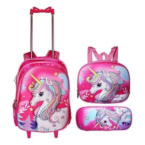 Lindo Kit De mochila escolar de rodinhas da Unicornio 3D, excelente opção para utilizar no dia a dia escolar pois além de um design único, é produzido com material resistente, confortável e de alta durabilidade. Possui um compartimento principal com espaço suficiente para cadernos, livros e acessórios, bolsos laterais para garrafinhas e estojo espaçoso com 1 compartimento.