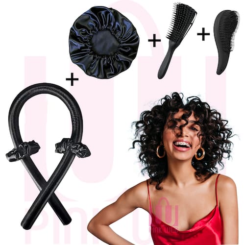 DESCRIÇÃO!O Modelador de cachos sem fonte de calor e danos Cetim é 100% de cetim , muito suave para seus cabelos.Cachos todos os dias sem ter medo de danificar seus cabelos.Não há necessidade de aquecimento dos seus cabelos.Fácil de usar cachos todos os dias. Escova MágicaIndicada para todos os tipos de cabelo, até os mais finos e frágeis, incluindo cabelos afro e cacheados.Pode ser usada para desembaraçar cabelos com Mega Hair!O seu design ergonômico, moderno e descolado aliado as suas cerdas flexíveis, de alturas variadas não puxam nem quebram os fios.Desfaz nós e escova suavemente, auxilia na distribuição de condicionadores e máscaras, garantindo um melhor resultado nos tratamentos.Pode ser usada para desembaraçar o cabelo no banho, em piscinas ou até na praia.Escova PolvoTorne o desembaraçar dos cachos muito mais fácil e indolor. Massageie o couro cabeludo estimulando a circulação e consequentemente acelerando o crescimento. Acelere a fitagem com os 8 divisores de cerdas da escova, facilitando a definição dos cachos. Super fácil de higienizar e lavar, removendo resíduos de creme para pentear e ativador de cachos com facilidade. Touca de Cetim O acessório protege os fios, naturais ou das laces, contra o frizz, a umidade, a quebra e previne a perda da definição, nos dias seguintes após a lavagem. A touca de cetim não é tão agressiva como a fronha de algodão, e por isso evita o atrito com o tecido enquanto você dorme.Especificações do Kit : Contém 2 scrunchies.Contém 1 rolo de 110 centímetros. Contém 1 Escova Polvo Flexível Contém 1 Escova mágica Contém 1 Touca de Cetim OBRIGADA PELA VISITA AGUARDAMOS SUA COMPRA. Marca: Pink Web