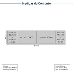 Largura do Conjunto: 210 cm Linha ou Coleção: Frame Marca: CabeCasa MadeiraMadeira Material Principal: MDP Necessita Montagem: Sim Origem do Produto: Nacional Possui Espelho: Não Possui