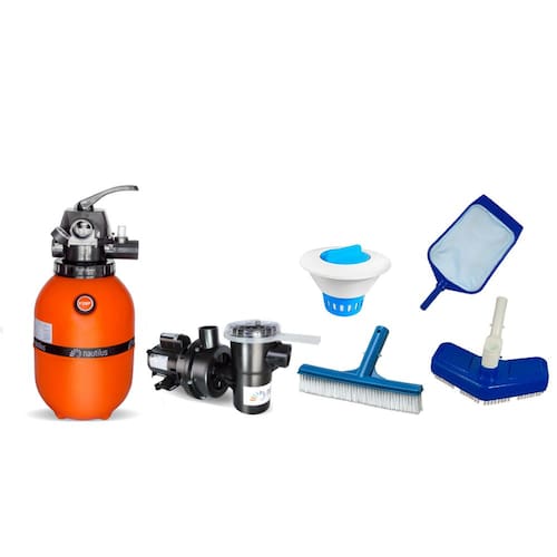 Com os filtros Nautilus o tratamento físico é garantido, o resultado é a água da sua piscina limpa e cristalina para sua saúde e bem-estar. Tanque produzidos com polietileno roto moldado em uma peça única, sem emendas. Modelo do filtro: F280P Indicado para piscinas de até: 19 mil litros Vazão m/h : 2,4 Carga do elemento filtrante: Areia 25KG Recirculação - Volume m : - Em 6 horas cerca de 14 mil litros são filtrados - Em 8 horas cerca de 19 mil litros são filtrados - Em 10 horas cerca de 24 mil litros são filtrados Motobombas: Eficiência e durabilidade para o lazer e bem-estar. As motobombas Nautilus são a tradução de alta eficiência no tratamento físico da piscina. Garantindo mais resistência e proteção. Modelo: NBFC-0 CV: 1/4 Tipo do Motor: Capacitor Permanente Tensão V : 127 / 220 Monofásica Tubulação Sucção: 50mm Tubulação Recalque: 50mm O filtro Nautilus para piscina F280P têm 3 três anos Motobomba série NBF têm garantia de 01 ano e apoio de assistência técnica Itens incluso: 1 Filtro F280P Nautilus 1 Motobomba 1/4 CV Nautilus 1 Aspirador Asa Delta 38mm 1 Escova Reta 1 Peneira Plástica 1 flutuador margarida para pastilhas