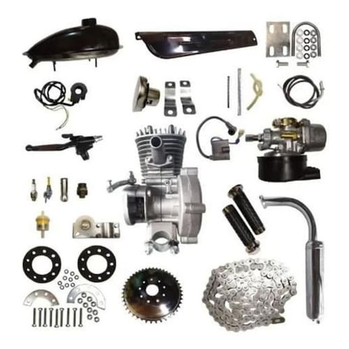 Tipo de motor: Monocilíndrico, 2 tempos, resfriado por ar; Ignição: Electrônica CDI/magneto ; Cilindrada: 48,3cc; Potência desenvolvida: 2,2 h; Combustível: Gasolina / Óleo 2T para motores resfriados por ar; Mistura de óleo: 63ml novos e 40ml após 500km para cada 2 litroS de gasolina; Embreagem: Seca ativada por alavanca, como uma moto; Transmissão força: Corrente e pinhão auxiliar tudo do lado esquerdo ; Partida: Uma curta pedalada e soltar a embreagem; Acessórios: Todos os acessórios necessários estão incluídos; Manual: CD em PORTUGUÊS com vídeos e instruções para montagem Velocidade:velocidade máxima de 55 km / hora. Consumo:o consumo está em torno de60 km/litro. Peso suportado: até 120 kg somando peso do condutor, peso do motor e peso da bicicleta Marca: Não Informado