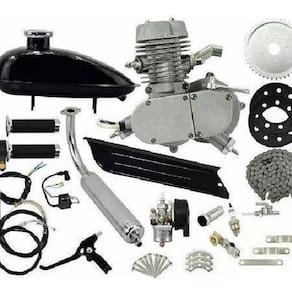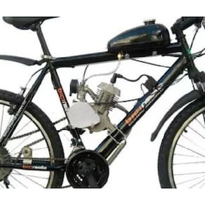 Kit Motor Para Bicicleta Gasolina 80CC 2 Tempos Motorize a sua bicicleta com um kit motor 2 tempos. O funcionamento é parecido com as mobiletes de antigamente e são ideias para passeios ao ar livre, para o seu comércio, para o seu transporte e para o seu lazer. INFORMAÇÕES SOBRE LEGISLAÇÃO Informe-se com o departamento de trânsito de sua cidade ou município sobre a autorização para a circulação de sua Bicicleta Motorizada. A Loja OESTESOM não se responsabiliza pelas mudanças que podem haver na legislação de Trânsito tanto local como nacional, que possam vir a impedir a utilização deste veículo em lugares específicos, o que exijam alguma documentação ao condutor. Informações técnicas: Cores disponíveis: - Prata Modelo: 80CC 2T Tipo de motor: 2 tempos Cilindradas: 80cc Potência: 3hp / 5000rpm Motor: Monocilíndrico Ignição: Eletrônica (CDI / magneto) Embreagem: Seca ativada por alavanca (semelhante a uma moto) Refrigeração: Ar Consumo: 60km/Litro Autonomia: Aproximadamente 108km Combustível: Gasolina / óleo 2 tempos Mistura de óleo: 63ml (novo) e 40ml (após 500km) por litro de gasolina Tempo de amaciamento do motor: 500km Velocidade de cruzeiro: 35 a 40km/h Velocidade máxima: 65km/h Tamanho do tanque: 1,5 litros Transmissão/força: Corrente e pinhão auxiliar (lado esquerdo) Coroa da corrente: 9 furos, 36 dentes Dimensões do motor: 21,5 x 18 x 13 (altura x comprimento x largura) Peso do kit: 9 kg Vela ignição Peso suportado: 120 Kg Características Partida com apenas uma pedalada Pronto para instalar Permitido na maioria das cidades (Consultar o Orgão Responsável de sua cidade) Leve e ágil Alto desempenho em subidas Alta performence Ótima durabilidade Biela alta Requisitos Aro: 24 polegadas ou mais Quadro: Formato ´´V´´ Dimensões de montagem: 27 cm entre o pé de vela e superior Aplicação em bicicletas com suspensão traseira: não Aplicação em bicicletas com suspensão dianteira: sim Itens inclusos: Tanque para 1,5 litros de gasolina. Carburador Original. Todos os Parafusos do Motor Allen. Corrente do motor. Protetor de corrente do motor. Esticador de corrente. Escapamento Preto. Vela de ignição. Cachimbo de vela. Torneira de gasolina. Mangueira de gasolina. Filtro de gasolina. Coroa e pinhão de transmissão. Eletrônico CDI. Adaptador para tubo grosso. Punho do acelerador com botão stop. Cabo do acelerador. Cabo da embreagem. Manicoto da embreagem. Kit fixação. Chave de vela. Kit para fixar coroa.