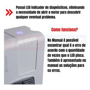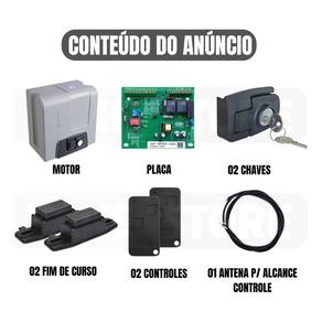 Conteúdo: 01 Motor DZ4 Nitro 01 Placa Central 02 Chaves para o destravamento (falta de energia) 01 Capa protetora do motor 02 Imãs sensor hall (Fim de curso) 02 Controles pretos com suporte 01 Antena para alcance do controle 01 Manual de instalação