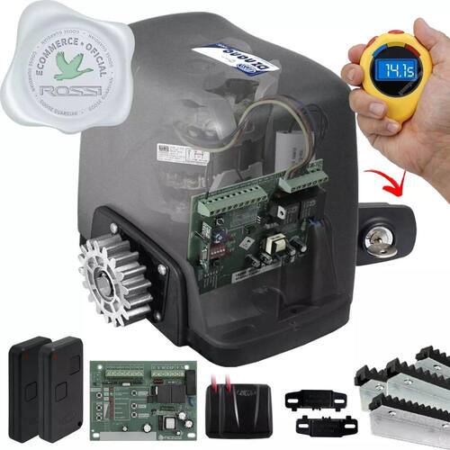 ITENS INCLUSOS 01 Motor de 1/4CV (110V ou 220V. Não é bivolt) 01 Placa eletrônica NKXH30 (testada e codificada com os controles) 01 Capacitor 02 Chaves para o destravamento (falta de energia) 01 Capa protetora do motor 02 Imãs sensor hall 04 Metros de cremalheiras (50cm cada barra) 02 Controles c/ suporte (testados e codificados com a placa) 02 Txcar Rossi 01 Manual de instalação