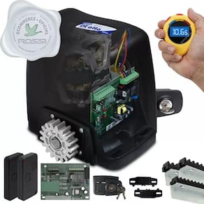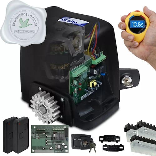 ITENS INCLUSOS 01 Motor de 1/5HP (110V ou 220V. Não é bivolt) 01 Placa eletrônica WKXHB90 (testada e codificada com os controles) 01 Capacitor 02 Chaves para o destravamento (falta de energia) 01 Capa protetora do motor 02 Imãs sensor hall 03 Metros de cremalheiras (50cm cada barra) 02 Controles pretos c/ suporte (testados e codificados com a placa) 01 Manual de instalação