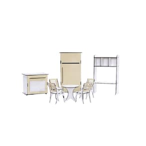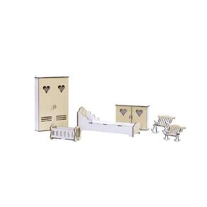 Confeccionado em mdf de 3 mm, o kit de móveis é composto pordiversas peças, as quais se encaixam sutilmente devido a precisão de corte dosmesmos. Não acompanha casinha.