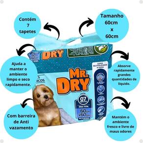 - 02 Tapete Higiênico Mr. Dry Com 7 Unidades 60cm x 60cm