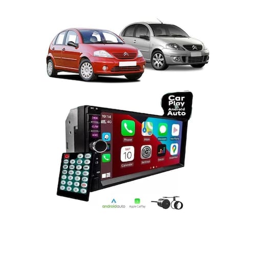 Kit Multimídia Citroen C3 2003 2004 2005 2006 2007 2008 2009 2010 2011 2012 7 Pol Carplay AndroidAuto USB BT - First Option 7810HCPAA