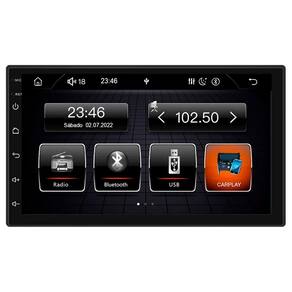Produto• Marca: ROADSTAR• Modelo: 708BR• Formato de montagem: 2 Din• Tela Sensível ao toque• Bluetooth 5.0• Espelhamento de tela sem fio• Android Auto com fio• Carplay com fio• Aceita comandos de volante• Botões LED 7 cores• Controle de volume• Controle de equalizador eletrônico predefinido• 4 saídas de 50W de potência máxima• Plugs de saída de linha RCA de baixa impedância• PLL Eletrônico Sintonia Estéreo AM/FM, Rádio MPX• 30 Predefinições de estações, 12 AM e 18 FM• Busca de estações, digitalização de predefinição• Função de armazenamento automático de predefinições de memória• Display TFT de alta definição de 7 Polegadas• Entrada para câmera de Ré • PAL / NTSC: Controlado automáticamente pelo sistema• Protecão Eletrônica Anti-choque ESP• Sistema operacional com várias línguas (português brasileiro incluso)• Suporta reprodução de arquivo MP3 / MP4 a partir de cartão USB / SD• Aceita arquivos nos formatos MP4, RMVB, AVI, FLV, MP3 e JPG