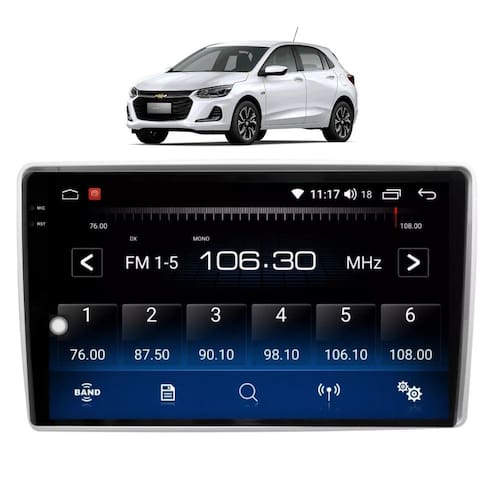 Acompanha moldura + câmera de ré + chicote de ligação do carro (funciona os comandos de volante) Obs. Somente para o Onix que não tem Mylink Especificações Técnicas: - Central Multimídia Modelo Slim - Memória RAM 2GB - Sistema Operacional: Android 10.0 - Memória interna: 32GB - Resolução da Tela: 1024X600 - Tela de 9 Polegadas Capacitiva - Bluetooth A2DP (HandsFree) - Carplay e Androidauto - WiFi, GPS, FM, BT, USB, SD, AUX - Idioma Português, Chinês, Inglês, Russo e outros - Play Store Integrado - Espelhamento de smartphone Android via cabo USB e WiFi e Ios via WiFi - Navegador GPS online (Waze e Google Maps) e Offline (iGo); - Player com suporte aos formatos de Áudio: MP3 / WMA / ACC / RA / WAY - Player com suporte aos formatos de Vídeo: AVI / MOV / MP4 / ASF / FLV / RMVB / MPG / WMV / VOB / JPGE / BMP - Rádio FM com Memorização de estações preferidas - 2 Portas USB Traseira - Entrada para Interface de Comando de Volante - Entrada para Câmera de Ré, com acionamento automático - Equalizador de 10 bandas ajustáveis de corte de frequência - Saídas e Entradas auxiliares: RCA para áudio e vídeo Navegação Inteligente On-line através de aplicativos Online (Google Maps, Waze) e Offline (iGo) - BLUETOOTH • Com A2DP, Hands-free, transfira seus contatos e musicas. Faça e receba suas ligações em segurança MP3 E MP4 • Você pode aproveitar suas músicas favoritas pelo Pendrive ou na memória interna da Central Multimídia.