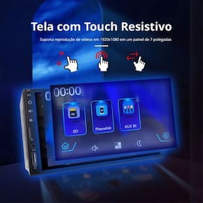 Produto• Marca: First Option• Modelo: 8100• Formato de montagem: 2 Din• Tela Sensível ao toque• Bluetooth 5.0• Espelhamento de tela com fio• Android Auto com fio ou sem fio via bluetooth• Carplay com fio ou sem fio via bluetooth• Aceita comandos de volante• Botões LED 7 cores• Controle de volume• Controle de equalizador eletrônico predefinido• 4 saídas de 50W de potência máxima• Plugs de saída de linha RCA de baixa impedância• PLL Eletrônico Sintonia Estéreo AM/FM, Rádio MPX• 30 Predefinições de estações, 12 AM e 18 FM• Busca de estações, digitalização de predefinição• Função de armazenamento automático de predefinições de memória• Display TFT de alta definição de 7 Polegadas• Entrada para câmera de Ré • PAL / NTSC: Controlado automáticamente pelo sistema• Protecão Eletrônica Anti-choque ESP• Sistema operacional com várias línguas (português brasileiro incluso)• Suporta reprodução de arquivo MP3 / MP4 a partir de cartão USB / SD• Aceita arquivos nos formatos MP4, RMVB, AVI, FLV, MP3 e JPG