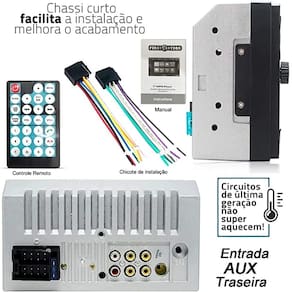 Especificações Técnicas: Idiomas: Chinês, Inglês, Russo, Espanhol e PortuguêsPainel com 7 cores de iluminação:(Azul, Azul Oceano, branco, amarelo, vermelho, roxo e verde)Equalizador Jazz, pop, Classic, RockCompatível com Android E IOS Reprodutor multimídia(áudio é Vídeo)Resolução de Imagem 800 x 480Visor com Data/Hora DigitalTela Full Touch 7 Polegadas Carplay e AndroidAuto via Cabo USBEntrada sd card (Até 35 gb)Espelhamento Android e iosEntrada Para Câmera de RéEntradas de áudio e vídeoComando de volante Sistema Resistivo2 Saídas De Áudio e VídeoFormato de Música MP3Entrada Auxiliar P2Conexão bluetoothAgenda TelefônicaControle RemotoModelo 7810HCPAAEntrada usbMp10 2 DinRádio fm