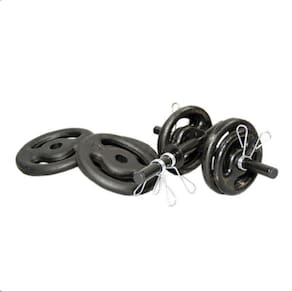 Categoria: Profissional e Residencial Cor: Preto Diâmetro: Aproximadamente 25 mm Tamanho: 40 cm Suporte de carga: 50 kg Item Incluso: 1 Par de barras + 2 pares de anilhas de 2 kg + 2 pares de anilhas de 1 kg + 4 presilhas cromadas Garantia contra defeito de fabricação Ean: 7800859705414
