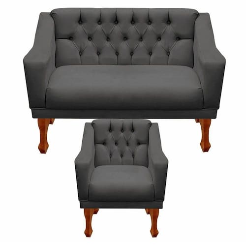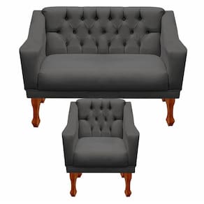 Kit Namoradeira + 1 Poltrona Decorativa Grécia Dritex Cor:suede Cinza