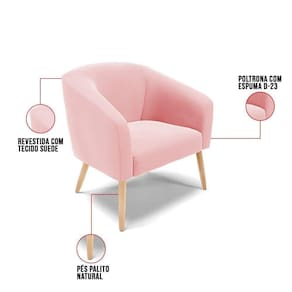 Kit 01 Namoradeira 02 Lugares E 01 Poltrona Stella Suede Rosa Bebê Pés Palito Natural - D'rossi