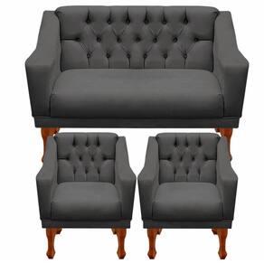 Kit Namoradeira + 2 Poltrona Decorativa Grécia Dritex Cor:sintetico Cinza