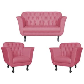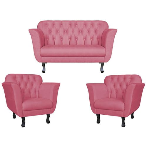 Kit Namoradeira + 2 Poltronas Decorativa Dália Suede Rosa Pés Madeira Mz Decor