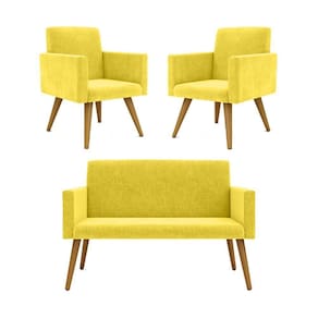 Kit Namoradeira + 2 Poltronas Decorativas Amarelo