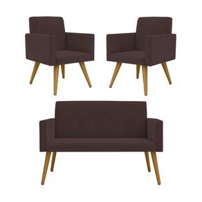 Kit Namoradeira + 2 Poltronas Decorativas Sala marrom
