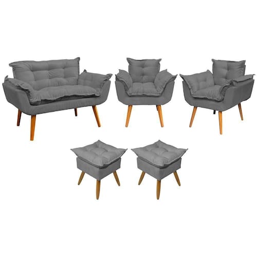 - Não nos responsabilizamos por montagens, subidas de escadas ou elevadores no momento da . Kit Namoradeira 2 Poltronas e 2 Puffs Para Sala Alice Suede