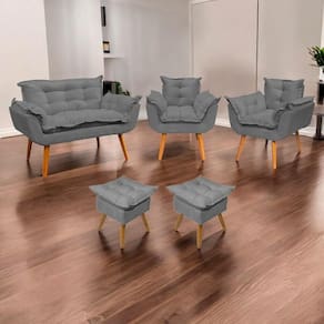 Transforme seu ambiente com o Kit Alice, composto por 1 namoradeira, 2 poltronas e 2 puff, combinando sofisticação, conforto e versatilidade. Com design elegante, adapta-se a diversos estilos de decoração, desde os mais modernos aos clássicos. Ideal para salas de estar, recepções, consultórios e escritórios, esse conjunto harmoniza perfeitamente com diferentes paletas de cores e elementos decorativos. Além da estética refinada, proporciona um ambiente acolhedor e convidativo, valorizando cada detalhe do seu espaço.