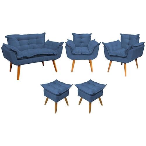 - Não nos responsabilizamos por montagens, subidas de escadas ou elevadores no momento da . Kit Namoradeira 2 Poltronas e 2 Puffs Para Sala Alice Suede