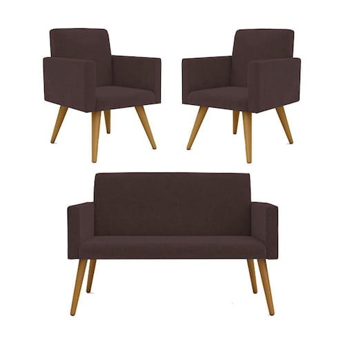 Kit Namoradeira + 2 Poltronas Nina Balaqui Decor Marrom