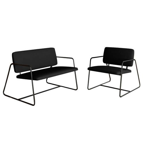 Kit Namoradeira Com Poltrona Sintra Industrial Preto/suede Preto - M.a