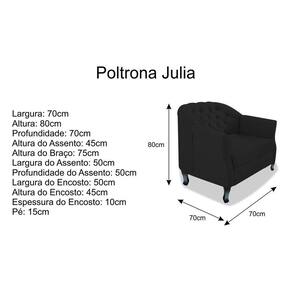 Gostaria de um móvel que trouxesse mais elegância e sofisticação para o seu lar? O Kit Namoradeira e 02 Poltronas Julia A02 é sua melhor opção! Com característica moderna e com acabamento de qualidade, estes produtos atenderão suas expectativas! Não perca essa oportunidade e adquira já a sua!Especificações Técnicas do Kit Namoradeira e 02 Poltronas Julia A02: -Namoradeira Julia A02:- Altura: 80 cm;- Largura Total: 120 cm;- Profundidade: 70 cm;- Peso: 35 Kg;- Peso Suportado: 120 Kg;-Poltrona Julia A02:- Altura: 80 cm;- Largura Total: 69 cm;- Profundidade: 70 cm;- Peso: 20 Kg;- Peso Suportado: 120 Kg;Diferenciais do Kit Namoradeira e 02 Poltronas Julia A02: -Namoradeira Julia A02:- Design Moderno;- Detalhes em Botonê;- Detalhes do Pé: acompanham pés de madeira de alta resistência;-Poltrona Julia A02:- Material da Estrutura: fabricado com Madeira Pinus e Eucalipto Reflorestada, e alguns detalhes em MDF;- Tipo de Assento: Estofado e com espuma de densidade D-26;- Tipo de Encosto: Estofado e com espuma de densidade D-18;- Detalhes do Pé: acompanham pés de madeira de alta resistência;Recomendações de limpeza: -Limpar com flanela limpa e seca. Não molhar o móvel e não expor em lugar úmido ou próximo de fontes de calor. Não usar produtos abrasivos.Observações Importantes: - As imagens ambientadas são meramente ilustrativas e podem apresentar itens que não compõe o produto;- Objetos decorativos que aparecem na foto não acompanham o produto;- As cores do produto podem variar de acordo com o monitor, a iluminação do ambiente, ou sua percepção visual;- O Kit Namoradeira e 02 Poltronas Julia A02 chegará montado para você, bastando encaixar os pés;- Confira as dimensões antes da compra e certifique-se de que o produto passará por elevadores, portas e corredores;- Ao receber seus produtos, verifique no ato do recebimento qualquer dano na embalagem;- Produto para uso residencial em ambiente interno, não devendo ficar exposto diretamente ao sol, calor e umidades excessivas.