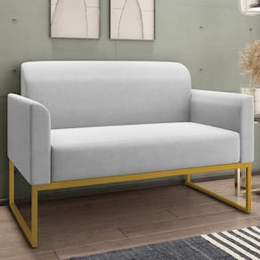O momento em que decidimos mobiliar nossa casa é um evento muito especial, pois representa o que gostamos e o que irá refletir através dos móveis que irão compor cada espaço do nosso Lar.Cada escolha é uma oportunidade de imprimir o que sentimos, e para Sala de Estar desejamos conforto e beleza, para a hora de um bate-papo ou um belo café da tarde. O Kit Namoradeira e 1 Poltrona Decorativa Base Industrial Dourada Maressa A05 Linho Cinza Claro - Ibiza pode transformar seu ambiente em algo único, sua estrutura em metal é firme e com fino acabamento, o estofado é macio e traz a leveza que o Estilo Industrial pode fazer em sua essência.Faça uma escolha inteligente e adquira conosco este Conjunto de Poltrona Namoradeira e Poltrona Decorativa, um toque de classe para o seu cantinho favorito.EspecificaçõesDimensões do Produto(Largura x Altura x Profundidade):Namoradeira: 113 x 76 x 64 cm.Poltrona: 65 x 77 x 64 cm.Peso: 33 kg.Outras MedidasProfundidade do assento: 46 cm.Largura do assento: 95 cm.Altura do assento ao chão: 44 cm.Altura do encosto: 35 cm.Altura Interna do Braço: 18 cm.Altura dos pés: 30 cm.Características do ProdutoMaterial da Estrutura: Madeira reflorestada de Eucalipto..Material da Espuma: Espuma D-28 no assento e encosto e D-23 nos braços..Peso Suportado: Até 360 Kg.Revestimento: Linho.Tipo de Encosto: Fixo.Tipo de Assento: Fixo.Quantidade de Lugares: 3 Lugares.Possui Pés: Sim.Material dos Pés: Base Industrial.Diferenciais:- Design moderno.- Percintas elásticas no assento.Sistema de Montagem: O produto é enviado montado, sendo necessário apenas fixar a base.Volumes: 3 Volumes.Conteúdo da Embalagem: 1 Namoradeira e 1 Poltrona Decorativa.Garantia do Fabricante: 90 dias contra defeito de fabricação.Montagem: Recomendamos que seja feita por um profissional.Recomendação de Limpeza: Utilize pano levemente úmido.Observações importantes:- Produto para uso residencial em ambiente interno, não devendo ficar exposto diretamente ao sol, calor e umidades excessivas.- Pode haver alguma diferença de tonalidade entre a imagem e o produto real, por conta do tratamento de imagens e a calibração de cores do seu monitor.- As imagens são meramente ilustrativas, não acompanham objetos de decoração e eletrônicos.- Confira o estado da embalagem, não devendo assinar o comprovante em caso de danos.- Não asseguramos, no ato da entrega, por subir escadas/elevadores, pelo transporte por guincho em apartamentos ou montagem, desmontagem e instalações. Eventuais despesas são por conta do comprador.- Confira as dimensões do produto e certifique-se de que passará normalmente por supostos elevadores, portas, escadas e/ou corredores de sua residência.