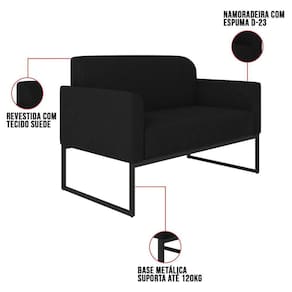 O momento em que decidimos mobiliar nossa casa é um evento muito especial, pois representa o que gostamos e o que irá refletir através dos móveis que irão compor cada espaço do nosso Lar.Cada escolha é uma oportunidade de imprimir o que sentimos, e para Sala de Estar desejamos conforto e beleza, para a hora de um bate-papo ou um belo café da tarde. O Kit Namoradeira e 1 Poltrona Decorativa Base Industrial Preta Maressa S07 Suede Preto - Ibiza pode transformar seu ambiente em algo único, sua estrutura em metal é firme e com fino acabamento, o estofado é macio e traz a leveza que o Estilo Industrial pode fazer em sua essência.Faça uma escolha inteligente e adquira conosco este Conjunto de Poltrona Namoradeira e Poltrona Decorativa, um toque de classe para o seu cantinho favorito.EspecificaçõesDimensões do Produto(Largura x Altura x Profundidade):Namoradeira: 113 x 76 x 64 cm.Poltrona: 65 x 77 x 64 cm.Peso: 33 kg.Outras MedidasProfundidade do assento: 46 cm.Largura do assento: 95 cm.Altura do assento ao chão: 44 cm.Altura do encosto: 35 cm.Altura Interna do Braço: 18 cm.Altura dos pés: 30 cm.Características do ProdutoMaterial da Estrutura: Madeira reflorestada de Eucalipto..Material da Espuma: Espuma D-28 no assento e encosto e D-23 nos braços..Peso Suportado: Até 360 Kg.Revestimento: Suede.Tipo de Encosto: Fixo.Tipo de Assento: Fixo.Quantidade de Lugares: 3 Lugares.Possui Pés: Sim.Material dos Pés: Base Industrial.Diferenciais:- Design moderno.- Percintas elásticas no assento.Sistema de Montagem: O produto é enviado montado, sendo necessário apenas fixar a base.Volumes: 3 Volumes.Conteúdo da Embalagem: 1 Namoradeira e 1 Poltrona Decorativa.Garantia do Fabricante: 90 dias contra defeito de fabricação.Montagem: Recomendamos que seja feita por um profissional.Recomendação de Limpeza: Utilize pano levemente úmido.Observações importantes:- Produto para uso residencial em ambiente interno, não devendo ficar exposto diretamente ao sol, calor e umidades excessivas.- Pode haver alguma diferença de tonalidade entre a imagem e o produto real, por conta do tratamento de imagens e a calibração de cores do seu monitor.- As imagens são meramente ilustrativas, não acompanham objetos de decoração e eletrônicos.- Confira o estado da embalagem, não devendo assinar o comprovante em caso de danos.- Não asseguramos, no ato da entrega, por subir escadas/elevadores, pelo transporte por guincho em apartamentos ou montagem, desmontagem e instalações. Eventuais despesas são por conta do comprador.- Confira as dimensões do produto e certifique-se de que passará normalmente por supostos elevadores, portas, escadas e/ou corredores de sua residência.
