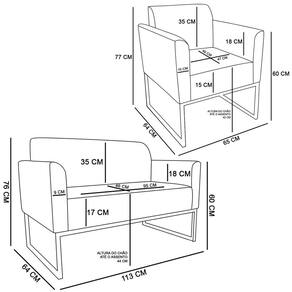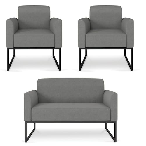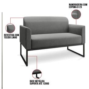 O momento em que decidimos mobiliar nossa casa é um evento muito especial, pois representa o que gostamos e o que irá refletir através dos móveis que irão compor cada espaço do nosso Lar.Cada escolha é uma oportunidade de imprimir o que sentimos, e para Sala de Estar desejamos conforto e beleza, para a hora de um bate-papo ou um belo café da tarde. O Kit Namoradeira e 2 Poltronas Decorativas Base Industrial Preta Maressa A26 Linho Grafite - Ibiza pode transformar seu ambiente em algo único, sua estrutura em metal é firme e com fino acabamento, o estofado é macio e traz a leveza que o Estilo Industrial pode fazer em sua essência.Faça uma escolha inteligente e adquira conosco este Conjunto de Poltrona Namoradeira e Poltrona Decorativa, um toque de classe para o seu cantinho favorito.EspecificaçõesDimensões do Produto:Poltrona (L x A x P): 65 x 77 x 64 cm.Namoradeiras (L x A x P): 113 x 76 x 64 cm.Profundidade do assento: 46 cm.Largura do assento: 95 cm.Altura do assento ao chão: 44 cm.Altura do encosto: 35 cm.Altura Interna do Braço: 18 cm.Altura dos pés: 30 cm.Peso: 46 kg.Características do ProdutoMaterial da Estrutura: Madeira reflorestada de Eucalipto..Material da Espuma: Espuma D-28 no assento e encosto e D-23 nos braços..Peso Suportado: Até 480 Kg.Revestimento: Linho.Tipo de Encosto: Fixo.Tipo de Assento: Fixo.Quantidade de Lugares: 4 Lugares.Possui Pés: Sim.Material dos Pés: Base Industrial.Diferenciais:- Design moderno.- Percintas elásticas no assento.Sistema de Montagem: O produto é enviado montado, sendo necessário apenas fixar a base.Volumes: 4 Volumes.Conteúdo da Embalagem: 1 Namoradeira e 2 Poltronas Decorativas.Garantia do Fabricante: 90 dias contra defeito de fabricação.Montagem: Recomendamos que seja feita por um profissional.Recomendação de Limpeza: Utilize pano levemente úmido.Observações importantes:- Produto para uso residencial em ambiente interno, não devendo ficar exposto diretamente ao sol, calor e umidades excessivas.- Pode haver alguma diferença de tonalidade entre a imagem e o produto real, por conta do tratamento de imagens e a calibração de cores do seu monitor.- As imagens são meramente ilustrativas, não acompanham objetos de decoração e eletrônicos.- Confira o estado da embalagem, não devendo assinar o comprovante em caso de danos.- Não asseguramos, no ato da entrega, por subir escadas/elevadores, pelo transporte por guincho em apartamentos ou montagem, desmontagem e instalações. Eventuais despesas são por conta do comprador.- Confira as dimensões do produto e certifique-se de que passará normalmente por supostos elevadores, portas, escadas e/ou corredores de sua residência.