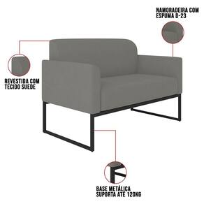 O momento em que decidimos mobiliar nossa casa é um evento muito especial, pois representa o que gostamos e o que irá refletir através dos móveis que irão compor cada espaço do nosso Lar.Cada escolha é uma oportunidade de imprimir o que sentimos, e para Sala de Estar desejamos conforto e beleza, para a hora de um bate-papo ou um belo café da tarde. O Kit Namoradeira e 2 Poltronas Decorativas Base Industrial Preta Maressa S08 Suede Grafite - Ibiza pode transformar seu ambiente em algo único, sua estrutura em metal é firme e com fino acabamento, o estofado é macio e traz a leveza que o Estilo Industrial pode fazer em sua essência.Faça uma escolha inteligente e adquira conosco este Conjunto de Poltrona Namoradeira e Poltrona Decorativa, um toque de classe para o seu cantinho favorito.EspecificaçõesDimensões do Produto:Poltrona (L x A x P): 65 x 77 x 64 cm.Namoradeiras (L x A x P): 113 x 76 x 64 cm.Profundidade do assento: 46 cm.Largura do assento: 95 cm.Altura do assento ao chão: 44 cm.Altura do encosto: 35 cm.Altura Interna do Braço: 18 cm.Altura dos pés: 30 cm.Peso: 46 kg.Características do ProdutoMaterial da Estrutura: Madeira reflorestada de Eucalipto..Material da Espuma: Espuma D-28 no assento e encosto e D-23 nos braços..Peso Suportado: Até 480 Kg.Revestimento: Suede.Tipo de Encosto: Fixo.Tipo de Assento: Fixo.Quantidade de Lugares: 4 Lugares.Possui Pés: Sim.Material dos Pés: Base Industrial.Diferenciais:- Design moderno.- Percintas elásticas no assento.Sistema de Montagem: O produto é enviado montado, sendo necessário apenas fixar a base.Volumes: 4 Volumes.Conteúdo da Embalagem: 1 Namoradeira e 2 Poltronas Decorativas.Garantia do Fabricante: 90 dias contra defeito de fabricação.Montagem: Recomendamos que seja feita por um profissional.Recomendação de Limpeza: Utilize pano levemente úmido.Observações importantes:- Produto para uso residencial em ambiente interno, não devendo ficar exposto diretamente ao sol, calor e umidades excessivas.- Pode haver alguma diferença de tonalidade entre a imagem e o produto real, por conta do tratamento de imagens e a calibração de cores do seu monitor.- As imagens são meramente ilustrativas, não acompanham objetos de decoração e eletrônicos.- Confira o estado da embalagem, não devendo assinar o comprovante em caso de danos.- Não asseguramos, no ato da entrega, por subir escadas/elevadores, pelo transporte por guincho em apartamentos ou montagem, desmontagem e instalações. Eventuais despesas são por conta do comprador.- Confira as dimensões do produto e certifique-se de que passará normalmente por supostos elevadores, portas, escadas e/ou corredores de sua residência.