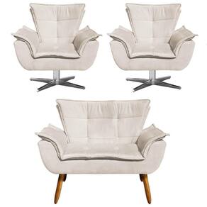 ColorFamily: Bege | SizeDescription: 91 x 128 x 62 cm | ProductInstructions: Produto para uso em ambiente interno, nao devendo ficar exposto ao sol, calor e umidade excessivos. | ProductHeight: 91 | ProductLength: 62 | Model: Opla | ColorSimple: Bege | AssemblyRequired: Sim, sugerimos a contratação do nosso de montagem (para os CEPs em que o está dispon | Marca: Ibiza | Peso Suportado: 120 kg | Tipo de Garantia: Fabricante | MaterialFamily: Madeira de Eucalipto | SupplierSimpleName: Kit Namoradeira e 2 Poltronas Giratórias Cromada Opla Suede Bege - Ibiza | ProductWeight: 60 | Color: Bege | Altura: 91 cm | ColorSupplier: Bege | Cor: Bege | ProductContents: 1 Namoradeira, 2 Poltronas | Requere montagem: Sim | Gênero: Unisex | ProductWarranty: 90 dias após o do produto | ProductWidth: 128 | Peso: 60 kg | OriginCountry: | Origem: | Material: Madeira de Eucalipto | Profundidade: 62 cm | Manual: Sim | OriginState: PR | Largura: 128 cm