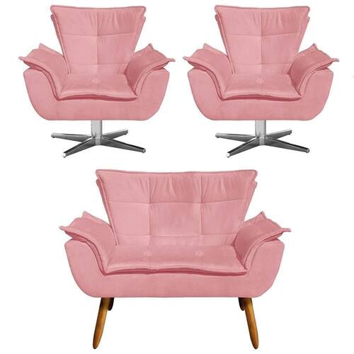 Altura: 91 cm | AssemblyRequired: Sim, sugerimos a contratação do nosso de montagem (para os CEPs em que o está dispon | Color: Rosê | ColorFamily: Rosê | ColorSimple: Rosê | ColorSupplier: Rose | Cor: Rosê | Gênero: Unisex | Largura: 128 cm | Manual: Sim | Marca: Ibiza | Material: Madeira de Eucalipto | MaterialFamily: Madeira de Eucalipto | Model: Opla | Origem: | OriginCountry: | OriginState: PR | Peso: 60 kg | Peso Suportado: 120 kg | ProductContents: 1 Namoradeira, 2 Poltronas | ProductHeight: 91 | ProductInstructions: Produto para uso em ambiente interno, nao devendo ficar exposto ao sol, calor e umidade excessivos. | ProductLength: 62 | ProductWarranty: 90 dias após o do produto | ProductWeight: 60 | ProductWidth: 128 | Profundidade: 62 cm | Requere montagem: Sim | SizeDescription: 91 x 128 x 62 cm | SupplierSimpleName: Kit Namoradeira e 2 Poltronas Giratórias Cromada Opla Suede Rose - Ibiza | Tipo de Garantia: Fabricante