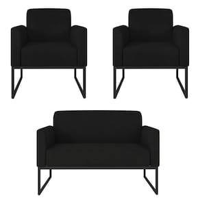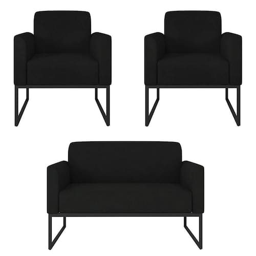 Cada escolha é uma oportunidade de imprimir o que sentimos, e para Sala de Estar desejamos conforto e beleza, para a hora de um bate-papo ou um belo café da tarde. OKit Namoradeira e 2 Poltronas Decorativas Base Industrial Preta Maressa S07 Suede Preto - Ibiza pode transformar seu ambiente em algo único, sua estrutura em metal é firme e com fino acabamento, o estofado é macio e traz a leveza que o Estilo Industrial pode fazer em sua essência.