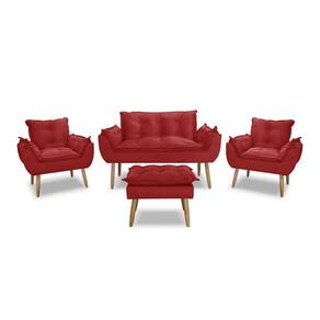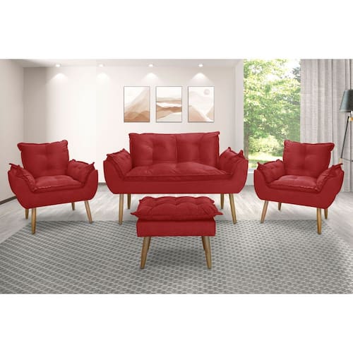 Kit Namoradeira Sofá Opala + 2 Poltronas Cadeira Opala + 1 puff - Vermelho