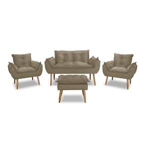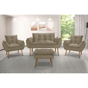 Kit Namoradeira Sofá Opala + 2 Poltronas Cadeira Opala + 1 puff - Bege Médio