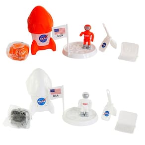 CONTÉM: 01 KIT NASA COM ASTRONAUTA, FOGUETE E SOLO LUNAR DE MASSINHA