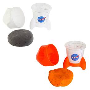 Com design repleto de detalhes, o kit conta com um bonequinho de astronauta articulado, um foguete detalhado que armazena a massinha e o molde do solo lunar, perfeito para recriar missões espaciais.