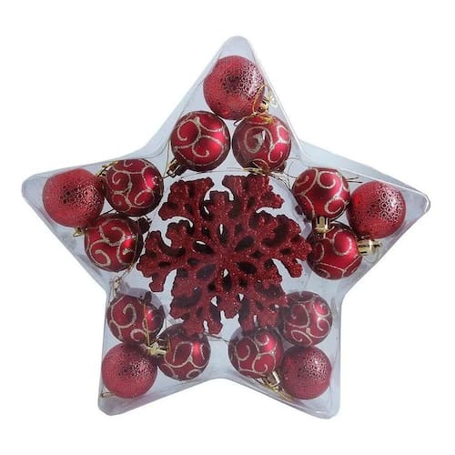 Kit Natalino Bolas E Flocos 25pcs Vermelho