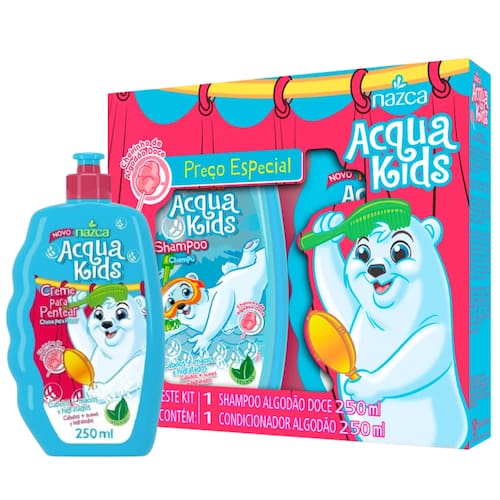 O novo Acqua Kids Shampoo Algodão Doce é o produto ideal para cuidar dos cabelos da garotada. A fórmula é suave, balanceada e foi testada oftalmo e dermatologicamente, portanto, não irrita os olhos e a pele do couro cabeludo. A versão Algodão Doce deixa os cabelos do seu filho macios, hidratados e com um delicioso cheirinho de Algodão doce.Este produto é VEGANO! Isso significa que ele não tem nadinha de origem animal e muito menos é testado nos bichinhos. Indicado para uso em crianças a partir dos 3 (três) anos