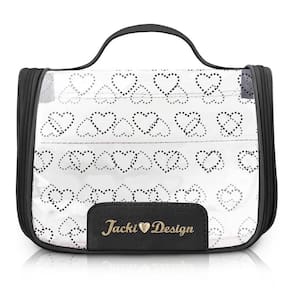 Ideal para viagens, academia, passeios ou para organizar produtos de beleza no dia a dia.Diferenciais:Design elegante com detalhes de coraçãoMaterial em PVC transparente e fácil de limparFechamento em zíper para segurança dos itensTag metálica com pin dourado Jacki DesignAmplo espaço interno para cosméticos e acessóriosMedidas: 24 cm (C) x 13 cm (P) x 15,5 cm (A)Cuidados: Limpe com pano úmido e sabão neutro; seque à sombra. Não deixar de molho, não usar produtos químicos e não lavar em máquina.Kit de Frascos para Viagem 10 PeçasO Kit de Frascos para Viagem Jacki Design é ideal para transportar líquidos, cremes e cosméticos com segurança e praticidade.
