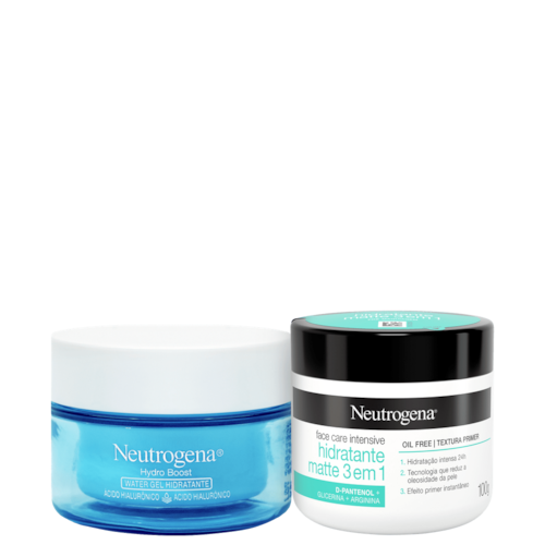 Kit com com hidratantes faciais para todos os tipos de pele. Neutrogena Ultra Hidratação Duo proporciona maciez e efeito matte.