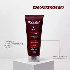 O Kit Shampoo Condicionador e Máscara SOS Fios Nick Vick foi formulado para um tratamento de choque e reposição de proteínas estruturais como a queratina, colágeno e elastina.